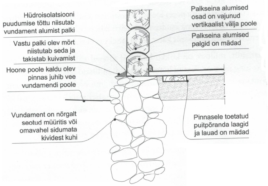 Vundamendid on kehvemas seisukorras kui oleks eeldanud. Endagi majal on vundament töömahukam kui esmapilgul arvasin. Kui vundamenti pole näha või see on iga paari meetri tagant pragune, tuleb kaaluda uue rajamist. Üksikud praod ja vuukimine on väike töö. Uue rajamine olemasoleva hoone alla on kordades kallim kui uusehitusel. Vundamendid on algusest peale kõigil vanadel hoonetel nõrgemad kui tänapäevased lahendused, sest neil puudub ühtne taldmik, tugev seotis ning piisavalt töötav sideaine. Lahtised kivid on kerged liikuma ja ei pruugi pinnase survet vastu võtta. Näriliste käigud ja puujuured on loomuliku kulumise ühed põhjused.