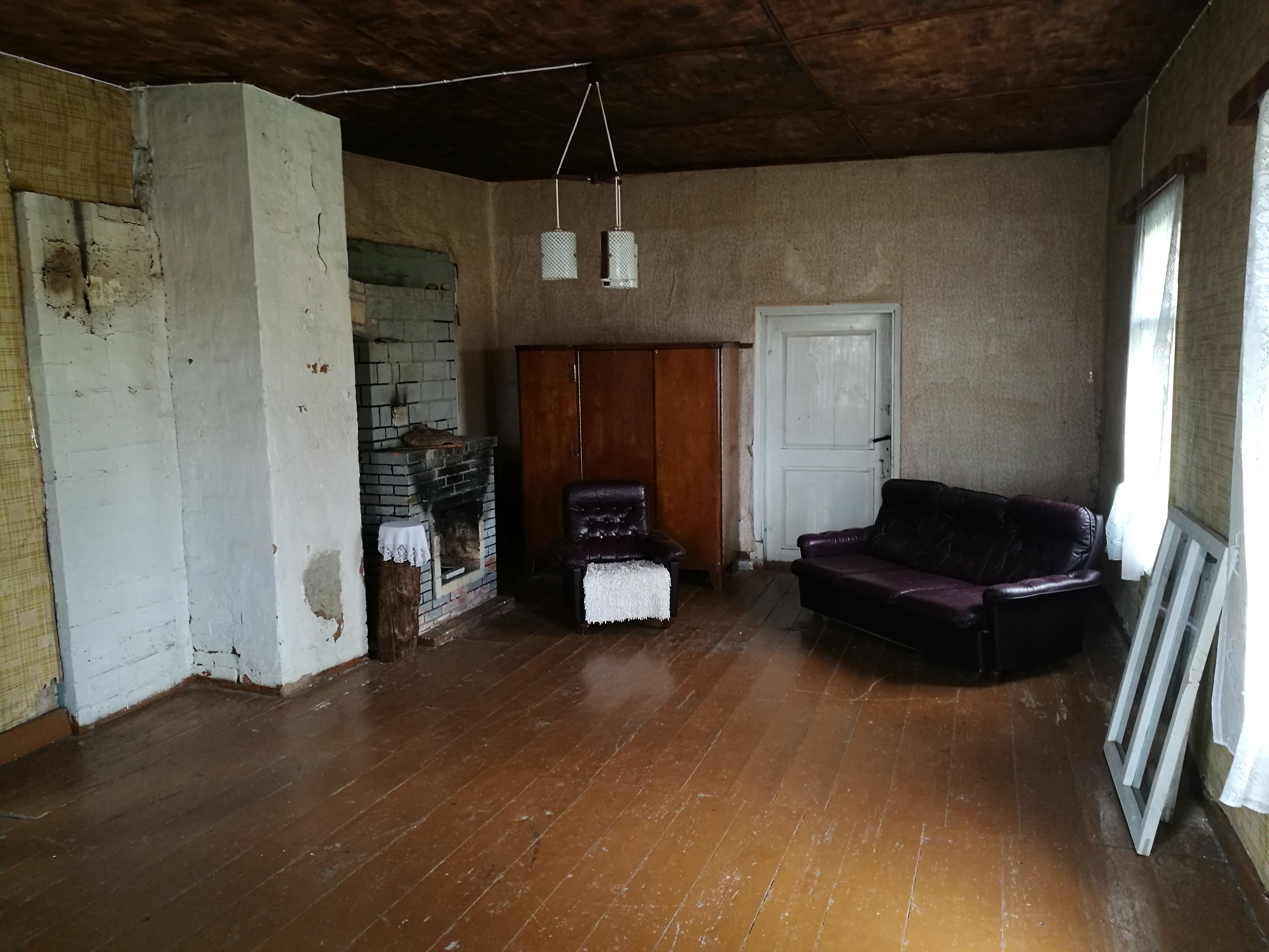 Köögis oli alguses üks tavaline uks, mis oli plaanis nihutada välisseina poole, sest teine WC ei oleks muidu soovitud mõõte välja andnud. Mingil ajal muutusid mõtted ja ukseava sai laiemaks. Nii läksid käiku esialgu veranda jaoks varutud uksed. Paarisuksed on pärit ühest Tallinnas lammutatud majast. Ukselengi ei olnud ja sai uus tehtud. Parempoolne osa on tapitud palki ja vasakpoolne leng kinnitatud kruvidega fibosse. Teine uks, mis läheb magamistuppa, avanes enne kööki. Kuna sinna seinanurka oli plaaneeritud telekas, siis eriti ei sobinud käelisus. Kogu leng sai eest võetud ja uks avaneb nüüd lastetuppa. Alumised otsad on hingedest altpoolt proteesitud.